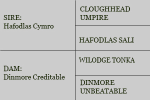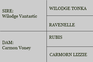 Wilodge Priceless has 4 daughters in the sale, 2 full sisters to Wilodge Cerberus by Tonka and 2 by Haltcliffe Vermont. Wilodge Priceless is the GGD of Dinmore Foxy.